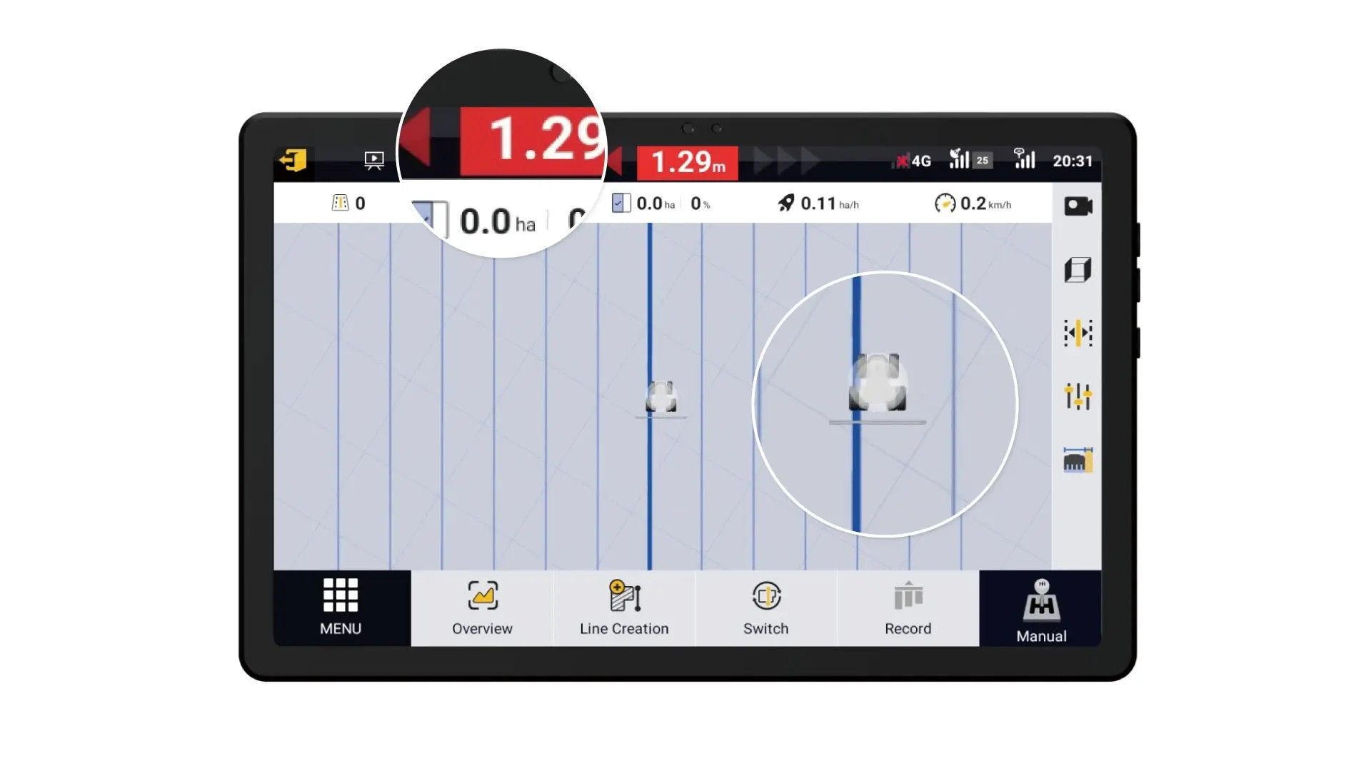 By monitoring sensors, motor status, and vehicle traveling speed in real-time, the AT2 Lite offers intelligent fault warnings to ensure the safety of equipment and personnel. When approaching objects or field boundaries, the system issues a timely warning and reminds you to turn around for safe and worry-free driving.