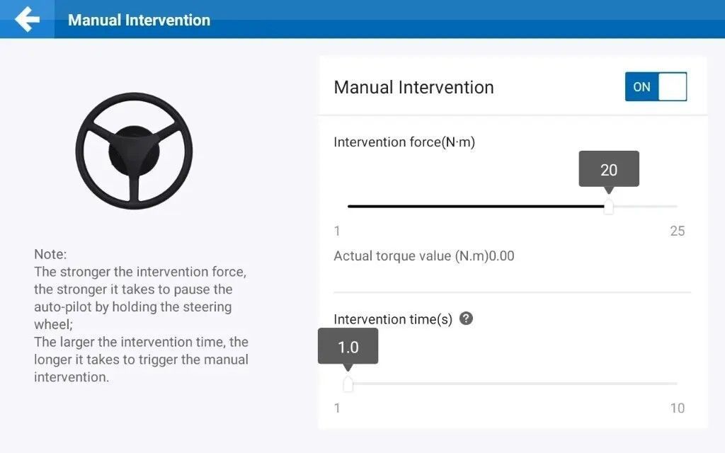 The AT2 Lite makes it easy to enable manual intervention if you find it hard to operate the screen due to space constraints or environmental disturbances. You can simply control the steering wheel by hand to deactivate the autopilot mode, giving you immediate control between manual and automatic driving for sake.